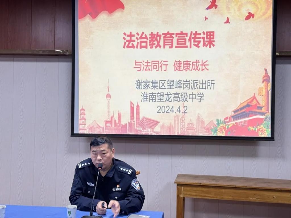 與法治同行,讓安全駐心。為了守護未成年人的健康成長, 2024年4月2日,謝家集區望峰崗派出所的四級高級警長徐輝為望龍高中送來了一場莊嚴肅穆的法治宣傳講座。